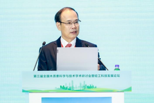Figure | Qiu Xueqing delivering a keynote speech at the Third National Lignin Science and Technology Academic Seminar