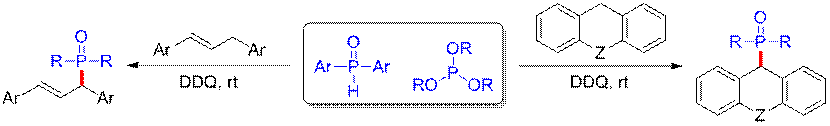 2018In 2004, Associate Professor Chen Qian and Professor Huo Yanping of the team of organic optoelectronic materials and functional polymers of the College of light industry and chemical engineering made important progress in the synthesis of organophosphorus / sulfur functional molecules, and developed a variety of new green and efficient synthesis methods for important small organic molecules.Compared with the traditional methods, this kind of reaction is easy to operate and the reaction conditions are very mild, and the use of transition metal catalysts and strong oxidants and other environmentally unfriendly reagents are avoided.For example: 1) a novel DDQ promoted C (SP) - H phosphorylation method was developed, which realized the functionalization of allylic and benzyl C–H bonds without metal participation,3) phosphorylation of 3-diarylpropene and oxaanthracene compounds; 2) development of a green and efficient method for the synthesis of thiosulfonates, the first report of the addition reaction of sulfonyl radical with disulfide; 3) development of a new reaction of methylene insertion of sulfur sulfur bond, the method uses acetone as methylene source, and skillfully uses decarboxylation reaction to realize the mild conditions of diGreen synthesis of acetals.3