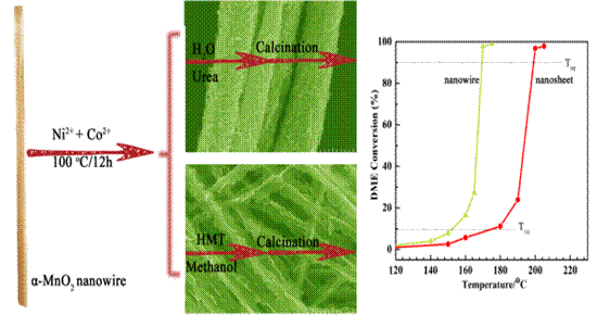 Heterostructure materials play an important role in catalysis or electrocatalysis."Controllable synthesis 3D hierarchical structured" published in organic chemistry FrontiersMnO@NiCoOand In the paper "its morphology dependent activity" (first author: Associate Professor Sun Ming, corresponding author Professor Yu Lin), two morphologies of heterogeneous composite materials were synthesized on the basis of manganese oxide nanowires, and the morphology dependent catalytic combustion performance was investigated.224
