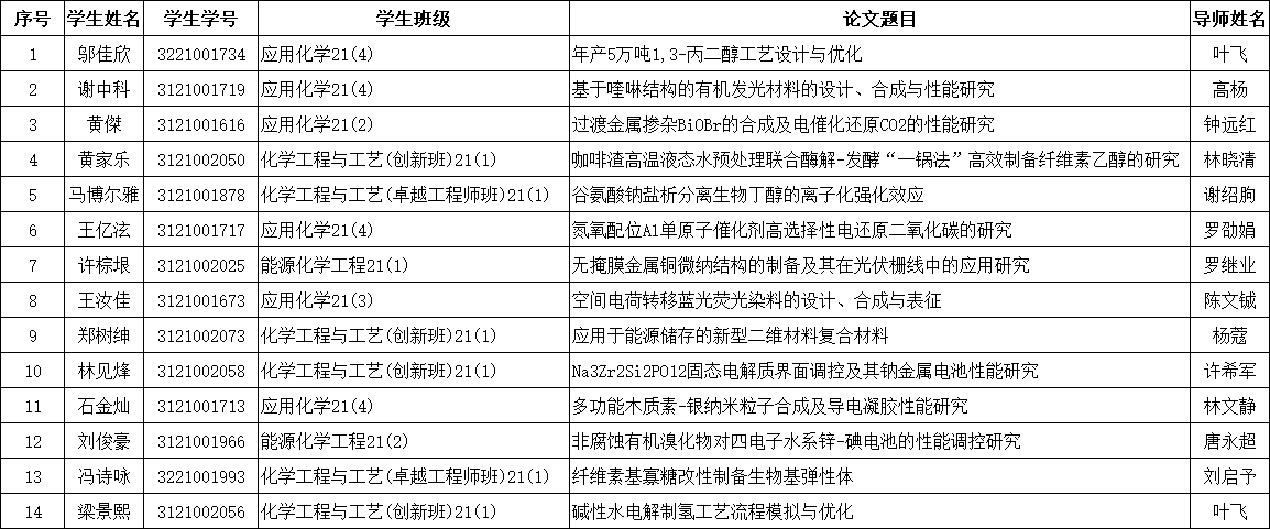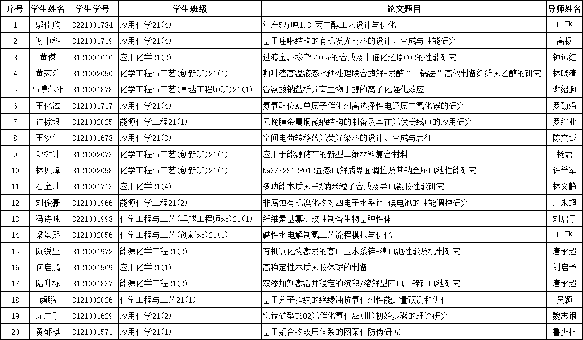 二、2025届本科生毕业设计(论文)创新奖拟推荐名单