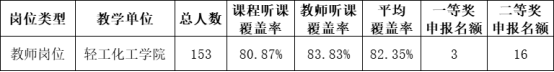 本科教学工作激励办法》规定和教学指导委员会会议精神,各教学单位申报教学优秀一等奖和二等奖的总名额指标不超过本学年度在编在岗教师人数的15%,同时考虑过去一年课程听课覆盖率和教师听课覆盖率,最后疯AV