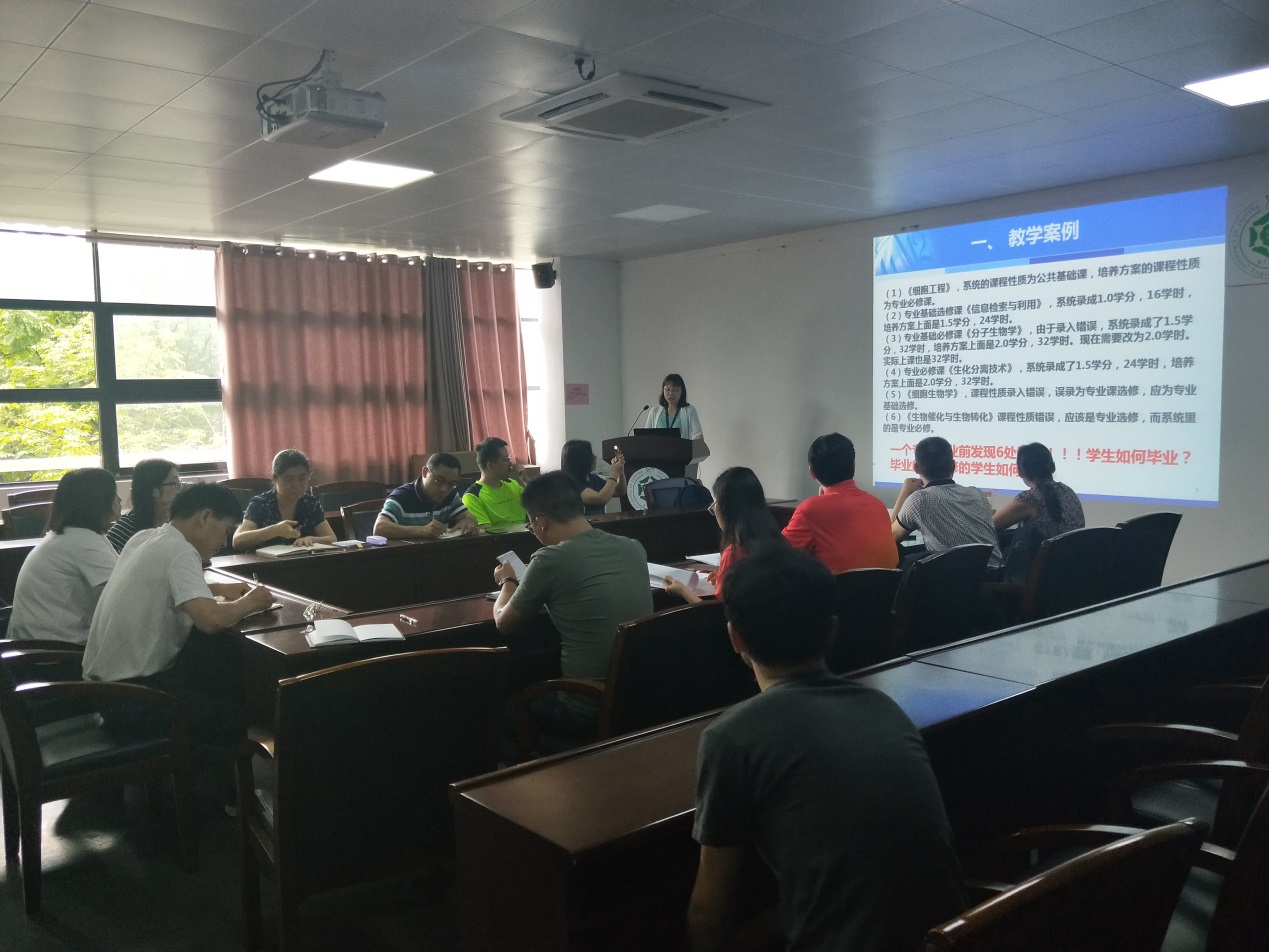 首先,郑育英副院长针对本学期教学工作存在不足及问题进行了讲解,要求在制定、录入、审核审查教学计划时,任务明确到人,负责担当,争取把教学计划修改条数和返回次数降下来。 其次,郑副院长讲了四六级监考及期末监考,要求严格按照学校规定,不能迟到,不能告知学院的情况下私自找人代替监考,对教学环节存在的问题进行了解读。最后,郑副院长针对一流课程建设让各专业提前做好规划,同时,对食品专业建设进行指导,要求进一步做好专业认证工作。