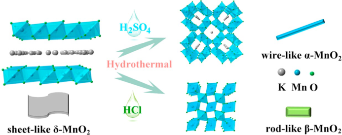 氧化锰的晶型控制和转化是氧化锰制备领域的基础问题。发表在Journal of Solid State Chemistry题为Controlled synthesis of tunnel-structured MnO2through hydrothermal transformation of δ-MnO2and their catalytic combustion of dimethyl ether的文章(第一作者:何彬彬研究生;通讯作者:余林教授),研究了层状氧化锰和两种隧道状氧化锰之间的转化及其催化燃烧性能。