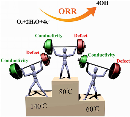 发表在Electrochimica Acta的题为“The art of balance: Engineering of structure defects and electrical conductivity of α-MnO2for oxygen reduction reaction”(第一作者:蓝邦博士生;通讯作者余林教授)重点关注电催化材料的缺陷和导电性的平衡问题。最近2年,氧缺陷的调控成为电催化领域的热点,但是对于性能优异的电催化剂,缺陷固然重要,导电性同样不可忽略,我们以MnO2为例的研究结果表明,当缺陷增多时,由于对晶体结构的破坏,其导电性会降低,从而对其性能带来负面影响,因此只有当二者之间存在平衡时,其氧还原性能才达到最优。