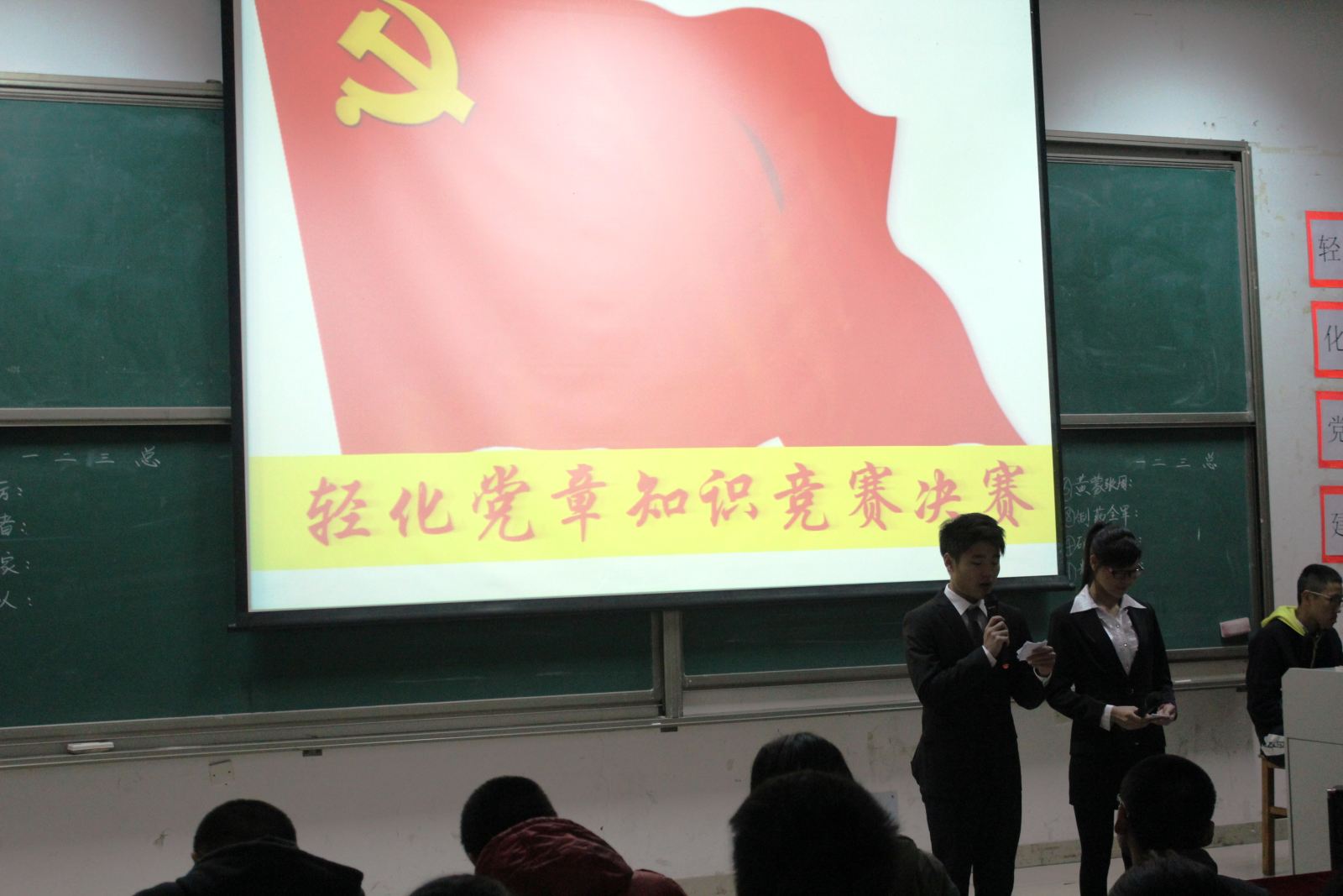 整个比赛过程,同学们激情昂扬,掌声连连不断,气氛热烈。本次党章知识竞赛创新了传统的党章知识竞赛模式,对入党积极分子进行了全面系统的理论素质竞技考察。赛事不仅让参赛队伍体会到了全局意识和团队精神的重要性,也让在场的观众学到了许多有关党章的知识,进一步提高了广大同学向党组织靠拢的自觉性和积极性。