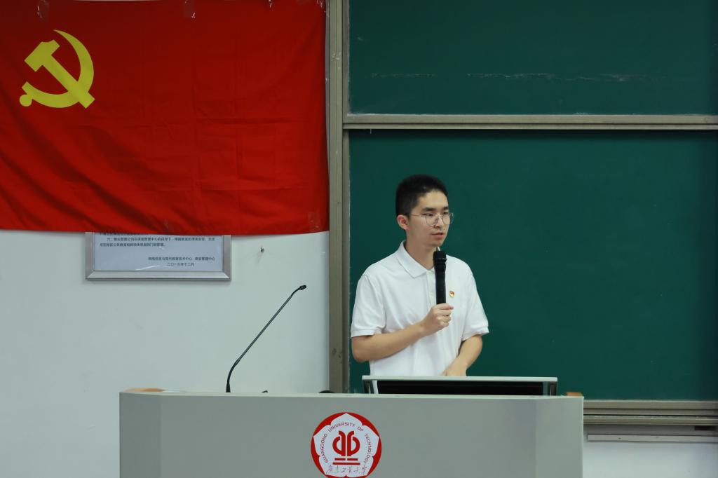 研究生党员潘国懿以科研工作者的身份阐述了他对当代青年的价值取向的理解。他以“以青春之我融入科技强国之新征程”为主题,以“新时代”与“大变局”为大背景,讲述在时代发展潮流下,青年科研工作者如何为提升国家的科技水平,促进经济增长和社会进步做出自己的贡献。除此之外,他还向我们介绍了我们专业的就业前景以及研究方向,有力地反驳了“化工专业是天坑”的错误说法。