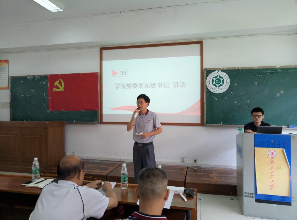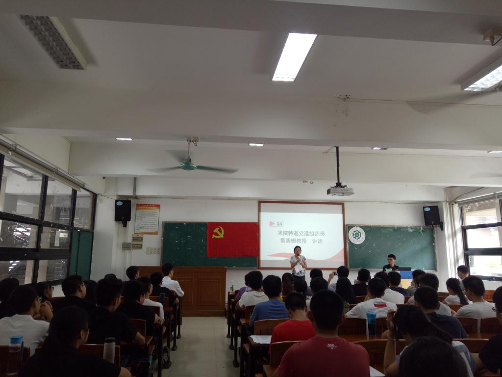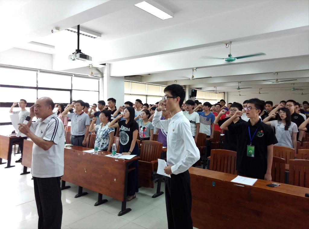在工学三号馆208报告厅举行党员宣誓大会。学院特邀党建组织员黎碧娜老师、杨云华老师,学院党委周东斌书记、苏兆祥副书记、学生党建指导老师魏源,以及各支部学生党员参加会议,在重温入党誓词中,坚定理想信念。