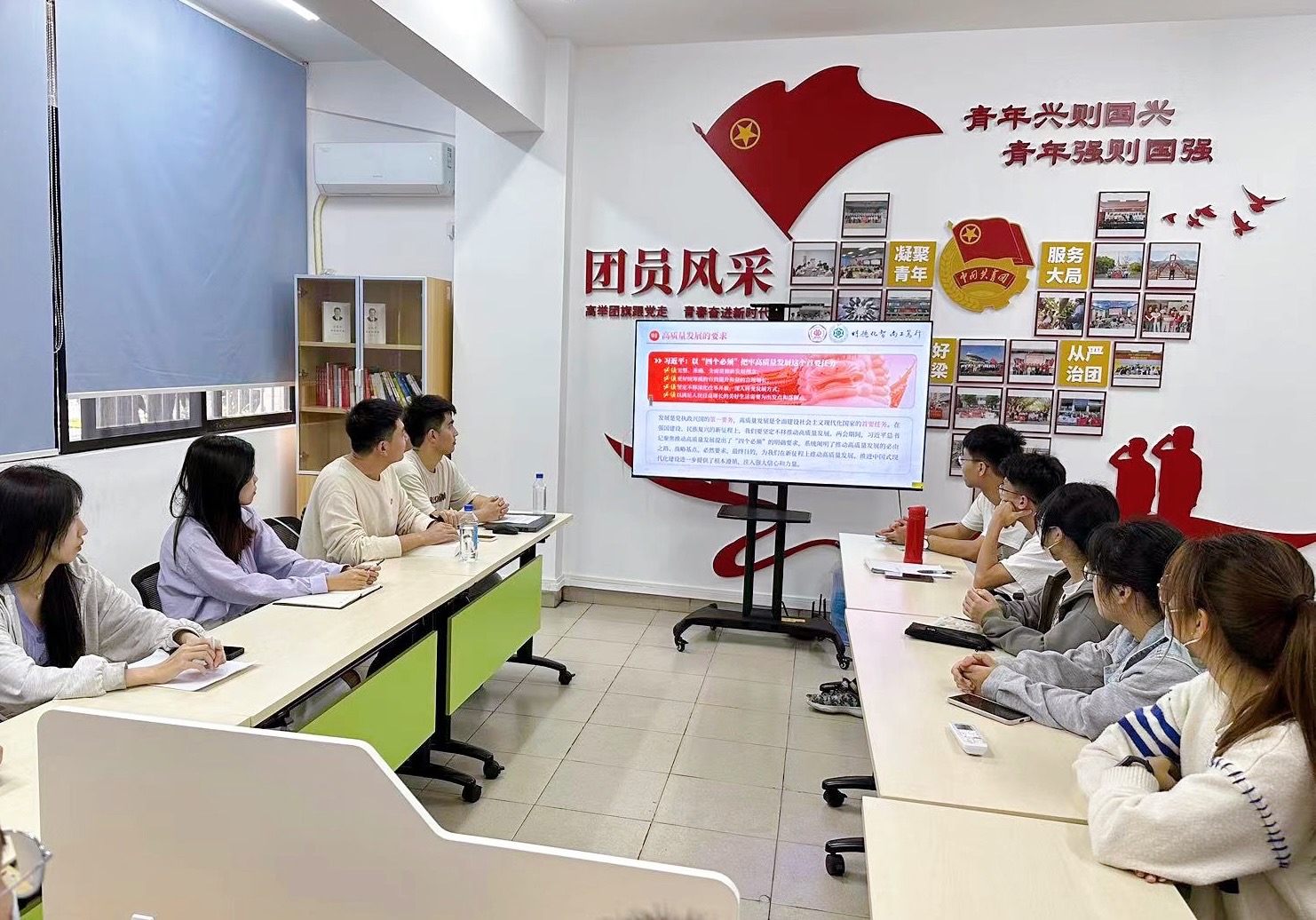 在讨论交流环节,支部书记林沛与在座同学围绕自身发展及工作实际展开讨论交流,并从以下三方面提出希望:一要加强党团协同建设,提升党建带团建的引领力。党员要发挥思想引领作用,带头参与“青年大学习”,提升支部学习党史教育的积极性;二要创新工作机制,提升党建带团建的组织力。通过划分团小组,借助学习强国建立线上党团支部阵地,以党员引领团小组开展集中理论学习,实现“共促、共研、共学”常态化;三要重视理论实践结合,提升党建带团建的服务力。立足支部优势及专业特色,积极参与创新创业、社会实践、志愿服务等实践活动。