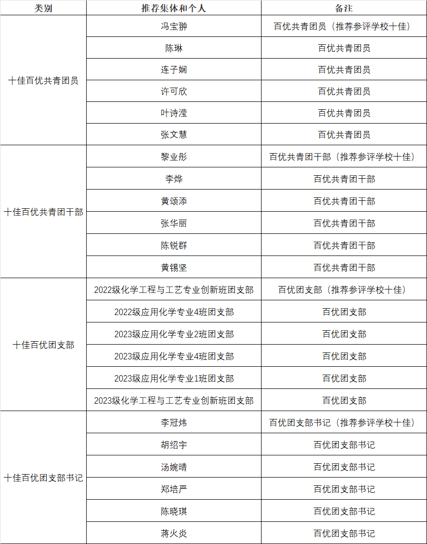 根据校团委《关于开展2024-2025学年“十佳百优”系列评选活动的通知》以及相关文件要求,经学生个人/集体申报、学院团委资格条件审查、现场展示答辩等环节,确定以下人员(集体)为推荐人选。现予以公示。