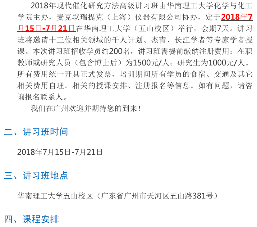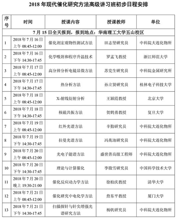 关于2018年现代催化研究方法高级讲习班开班的通知