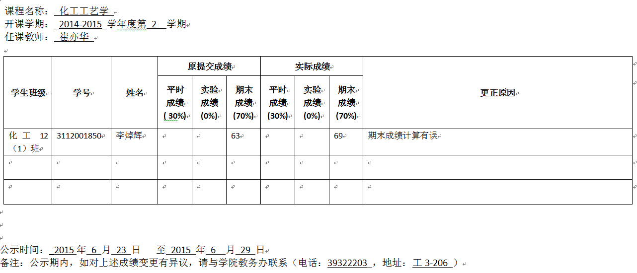 成绩变更公示