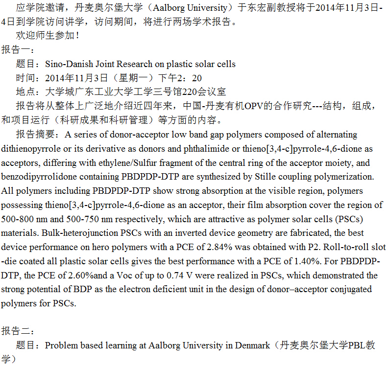 丹麦奥尔堡大学于东宏副教授学术报告