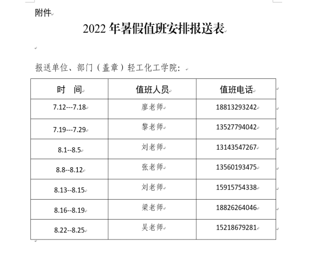 具体值班老师安排请看下表: