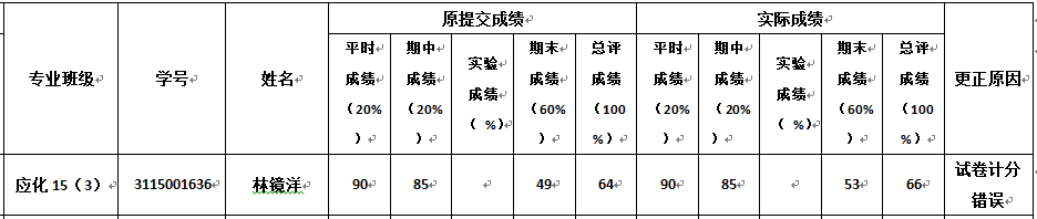 备注:公示期内,如对上述成绩变更有异议,请与学院廖老师联系(电话:39322090,地址:工四-202-1)