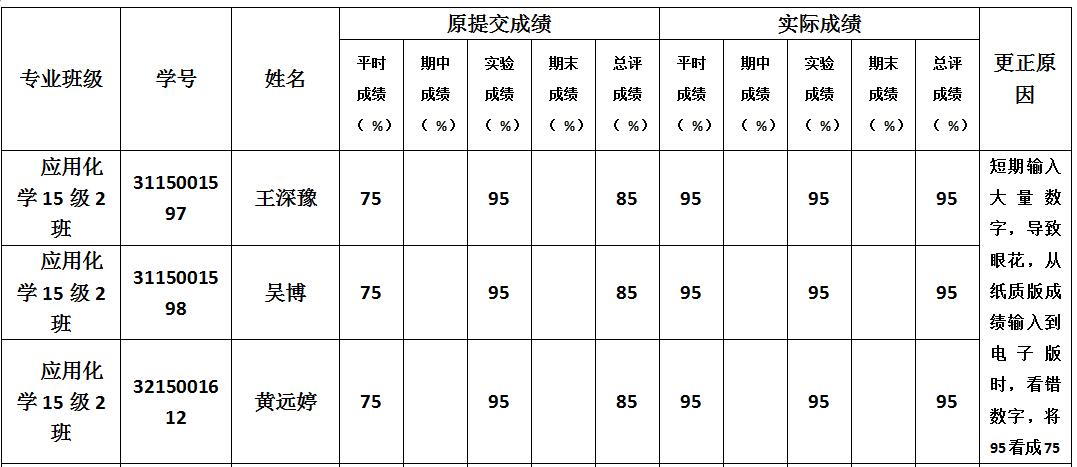 备注:公示期内,如对上述成绩变更有异议,请与学院院办陈老师联系 (电话:39322203,地址:工4-201-3)