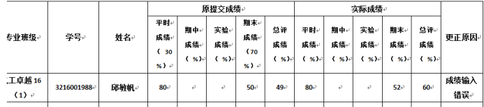备注:公示期内,如对上述成绩变更有异议,请与学院教务办联系(电话:39322203,地址:工4-202-3 )