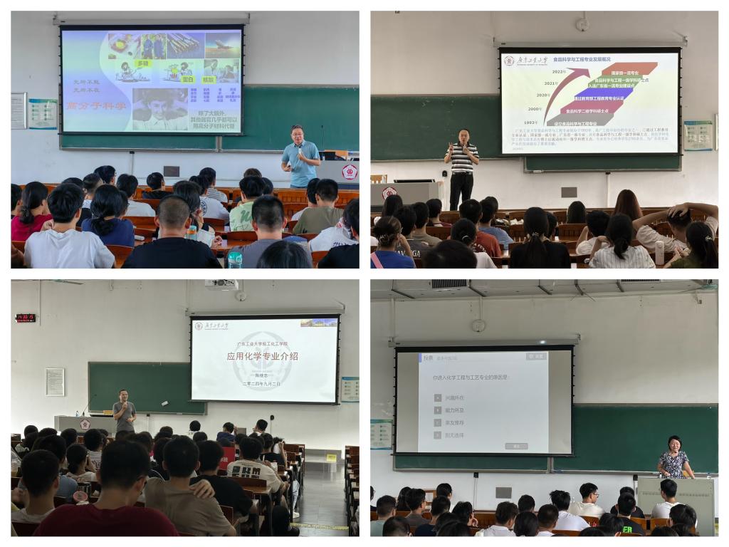 随后,食品科学系党支部书记姜燕老师及2024级化学工程与工艺创新班班主任彭少敏老师、应用化学2班刘迎春老师、能源化学工程2班皮云红老师、化学1班黄森传老师作专业认同感教育。他们分别结合学院学科及自身的成长经历,为同学们介绍了行业形势、就业方向等,以此让新生更好地了解自己所学专业的前沿发展动态、交叉学科情况和升学就业前景,提高新生对自身所学专业的认识,提高其对专业的认同感与归属感。