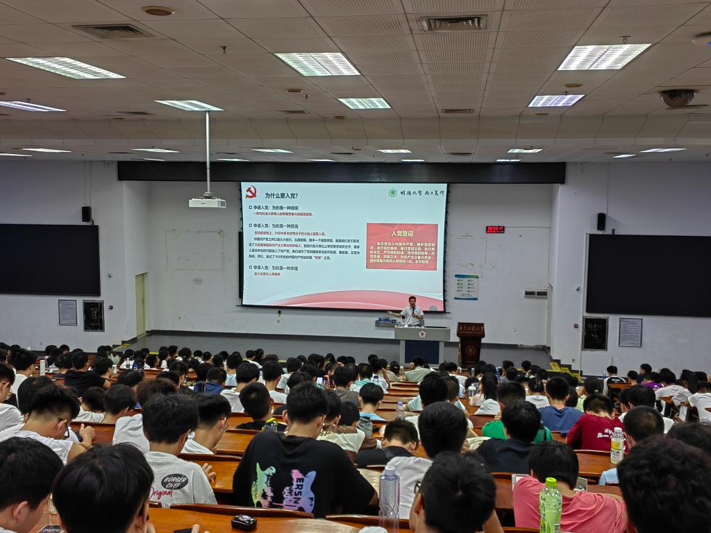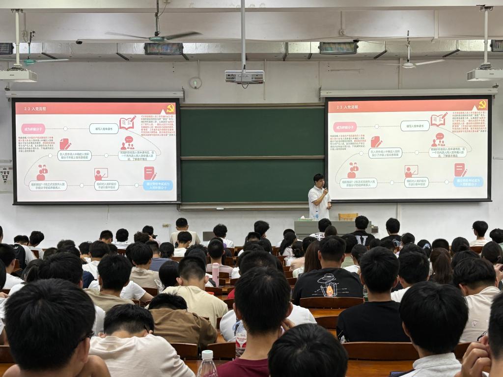 学院党建组织员冯浩宸老师给同学们介绍了入党流程。他首先播放了优秀党员的相关视频,随后,讲解学院工作案例等形式,让同学们更详细直观地了解入党全过程,并且强调了关于填写入党材料的详细要求。最后,他分享了丰富多彩的党支部生活,也欢迎同学们在入学之际积极递交入党申请书,向党组织靠拢,争取早日成为一名优秀的中国共产党员。