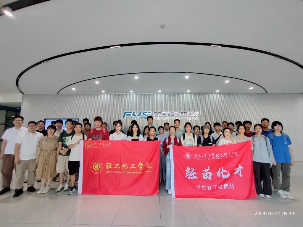 为深化校企合作,提高人才培养质量,10月22日,学院党委副书记杨刚,化学工程系教师、广东省润滑油行业协会秘书长潘传艺,团委书记李韵捷,辅导员项浩晟和赖振鑫等一行带领学院各年级本、硕、博共41名学生赴广东孚延盛科技有限公司开展访企拓岗促就业活动。