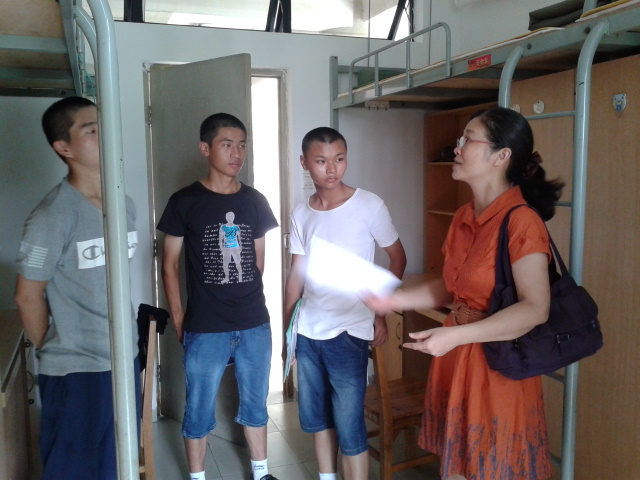 9月10日上午,疯AV 党委英健文副书记在学院团委书记林焕章老师和14级新生辅导员毛元渊老师的陪同下看望了疯AV 14级国防生。