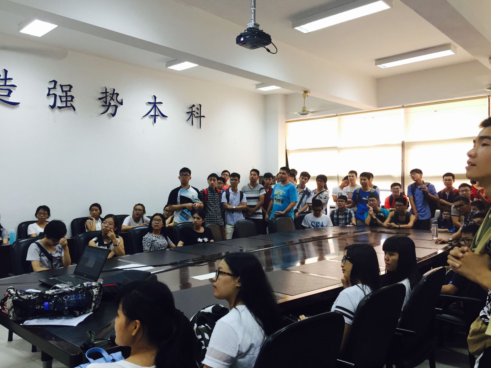 交流会上,主讲人先是表达了对2015级新生到来的激动之情,随后用一段幽默的大学生活视频活跃了现场的气氛。紧接着主讲人从学校历史、近年来取得的成就等方面介绍了学校的大致情况并引出大学与高中的不同之处,以自己大一的经历为例分享了对生活、交际、社团等方面的感悟与收获,并重点介绍了阳光心协的组织架构、工作职能、特色活动及心语轩的日常运作等,让同学们对疯AV