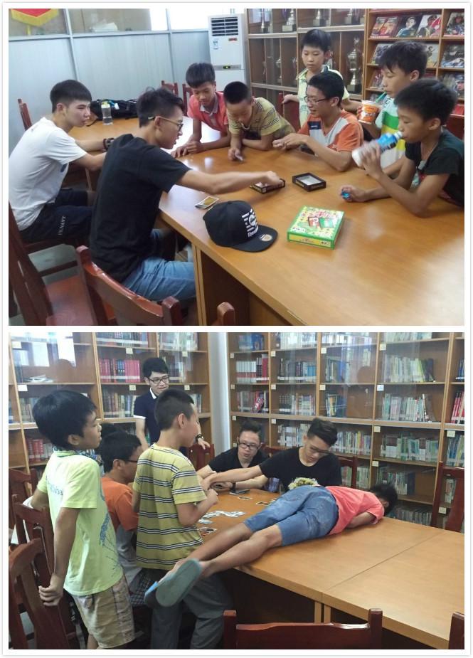 淘气的男孩子喜欢刺激的、充满竞争的游戏,队员们精心准备的桌游“谁是牛头王”极大地激发起他们学习的兴趣。这个游戏考验的是选手的观察、计算与推测能力,小同学们活泼可爱,妙语连珠,妙招频出,令队员们纷纷大呼其机智过人,现场妙趣横生,其乐融融。