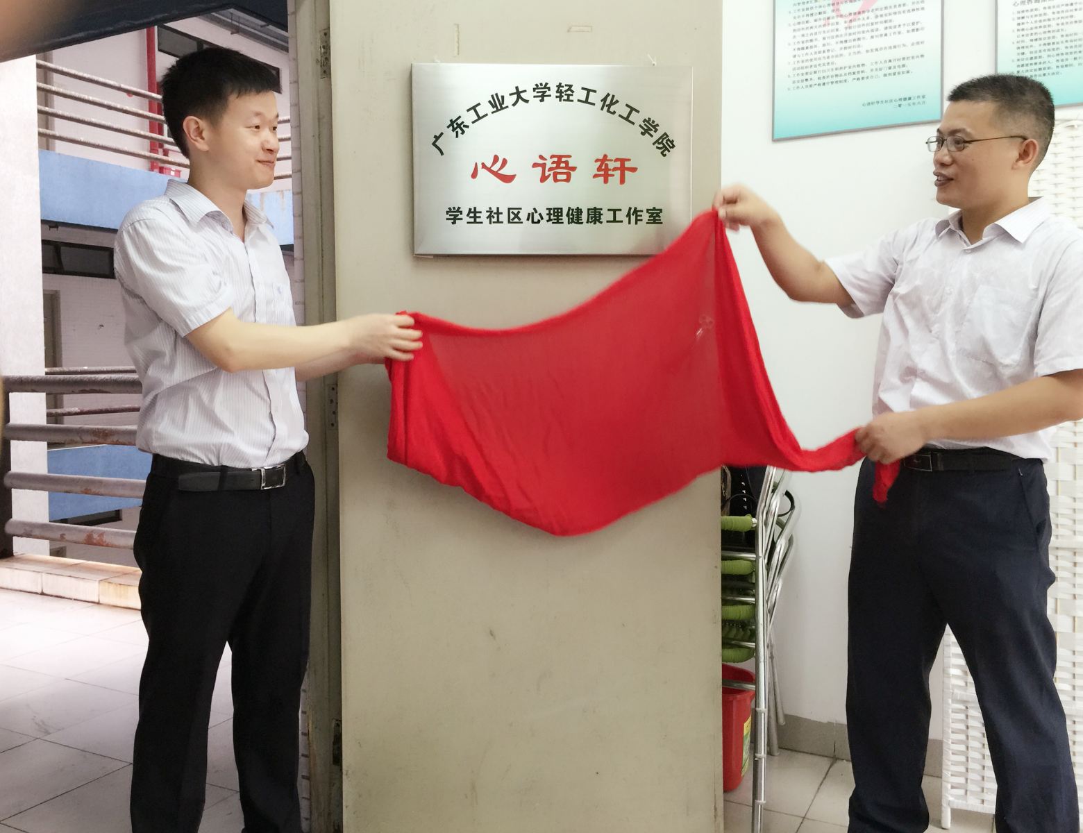 在学生宿舍东七四楼举行“心语轩”工作室揭牌仪式,学生处副处长罗嘉文,学院党委副书记苏兆祥、校心理健康教育与咨询中心副主任黄艳萍、疯AV