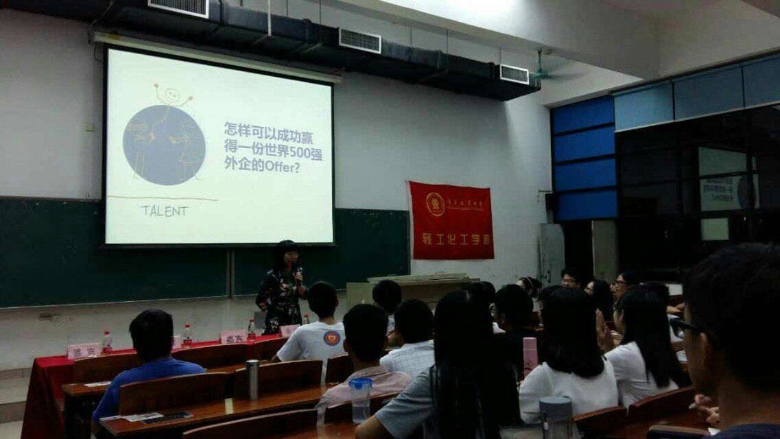 胡慧莹女士以“如何成功拿到一个世界500强外企的offer ”为主题展开,介绍了外企MT的招聘流程,如何在简历、穿着、面试上更胜一筹。她指出:在简历制作上,要做到简单明了、内容分明,实习经历要写出自己的收获和成效;穿着方面让自己觉得自信自然就是最合适的;在面试前应该做好对应聘公司、应聘岗位、以及自我能力的了解,面试过程中面试官虽然会有各种各样的面试形式,但始终保持良好的心态才是最重要的。