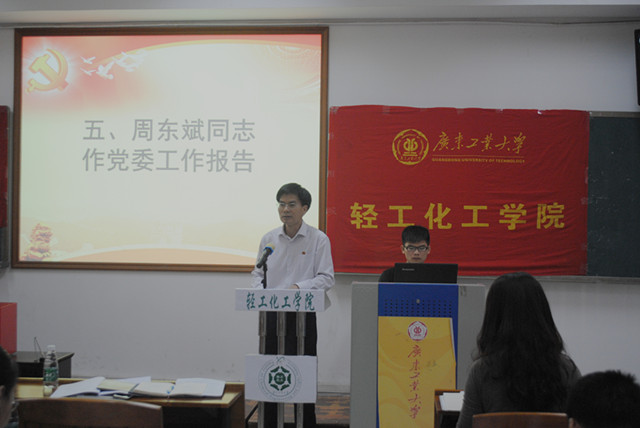 学院党委副书记苏兆祥同志主持正式会议。奏唱《国歌》后,学校党委组织部长李彦旭同志代表学校党委宣读关于疯AV 召开党代会的批复文件。学院党委书记周东斌同志代表学院党委作了《凝心聚力,真抓实干,为建设特色鲜明的高水平学院而努力奋斗》的工作报告。报告回顾和总结了上一届学院党委所取得的成绩和经验,分析当前面临的形势,明确今后学院发展和党的建设的目标、任务,尤其明确了高水平学院建设任务,体现了学校党委对疯AV 党委工作的部署和要求。报告提出,全院所有党员干部要深入贯彻落实党的十八大、十八届三中、四中全会和习近平总书记系列重要讲话精神,贯彻落实学校第四次党代会精神,根据学校党委“四个全面”为统领,进一步组织全院党员,团结广大师生员工,把握机遇,整合资源,以实事求是的态度和敢于拼搏的精神,全面推进学院各项工作,为学校高水平大学建设作出新的贡献。