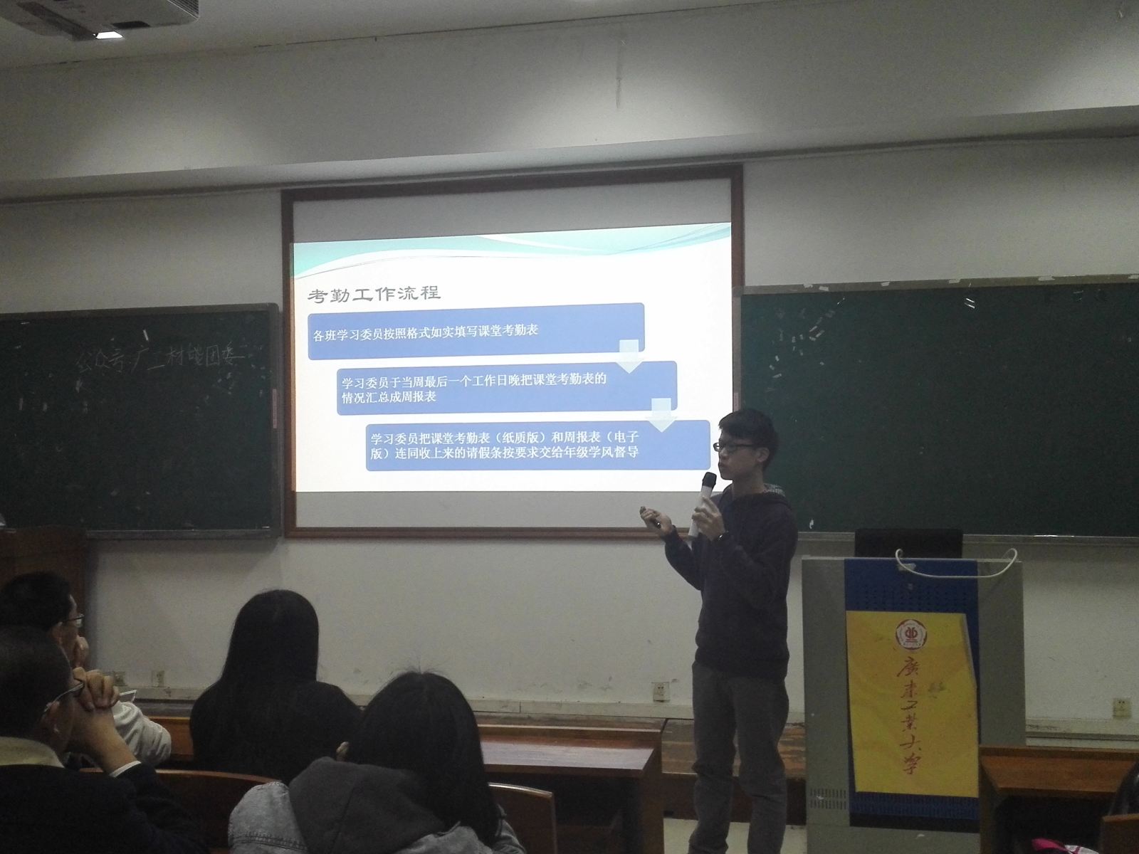 学风建设负责老师张明主持,2015级、2014级、2013级各班班长、学习委员及学工会成员等主要学生干部参加了会议。