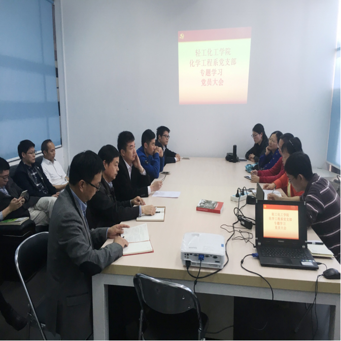 化工系党支部全体党员在系活动室召开了学习党的十九大精神和《习近平谈治国理政》专题组织生活会。方岩雄院长以普通党员身份参加学习,联系化工系党支部的杜志云副院长到会指导。