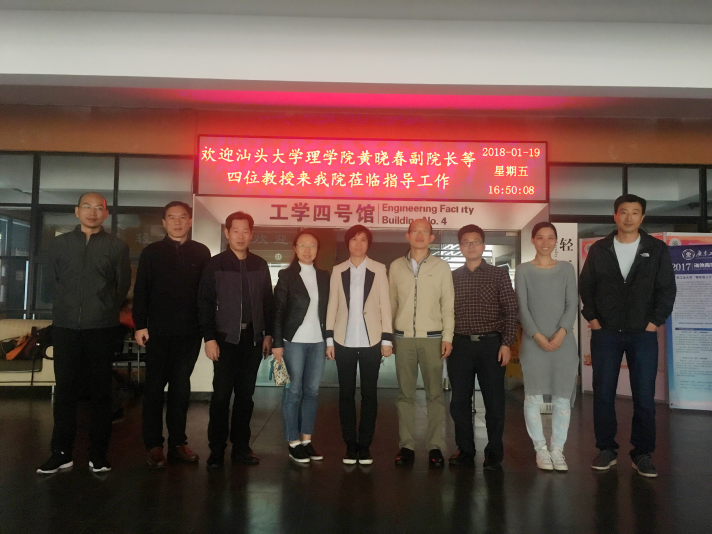2018年1月19日下午,汕头大学理学院由理学院副院长黄晓春教授带队,理学院工会主席、化学系党总支书记方奕文教授,化学系主任鲁福身教授和化学系教学主任宋一兵教授来到疯AV