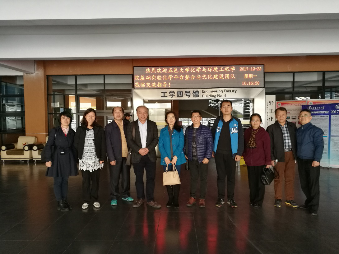 2017年12月25日下午,五邑大学化学与环境工程学院由化学学院化工系主任陈璐老师带队,化环学院前实验中心副主任李辰、化环学院前党总支书记尹庚明以及朱自强,王欣老师来到疯AV
