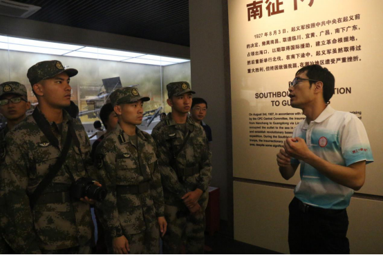 参观南昌八一起义旧址后,队长何宝旺感慨:90年前的那个“八一”凌晨,周恩来等革命先辈在江西大旅社率领二万余部队进行武装起义,这就是著名的南昌起义,这个江西大旅社便是我们今天参观的南昌起义总指挥部旧址。南昌,英雄城,革命先辈在这里为挽救革命打响武装反抗国民党反动派的第一枪。南昌起义是共产党独立领导革命和建立人民军队的发端。如今我们广工国防生组成暑期“重越雄关道”思想成长体验团队穿着军装前来参观学习,仍能感受很多市民的亲切问候和热心帮助。南昌,在这个军旗升起的地方,永远传承着伟大的革命精神。