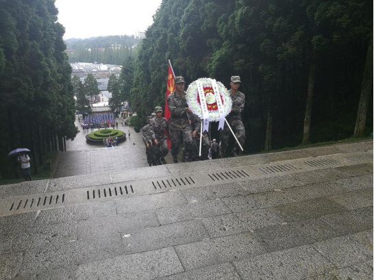 8月28日,思想成长体验营国防生辗转到了井冈山茨坪镇,这里是当年井冈山革命斗争时期根据地的中心。在井冈山革命烈士陵园,国防生队员穿着整洁的军装,踏着整齐的步伐,神情肃穆地扶着花圈,缓缓走上纪念馆前的石阶,来到纪念馆堂,庄严地为革命先烈敬献花圈,集体向先烈们三鞠躬、默哀,以此表达对革命烈士的崇高敬仰和深切缅怀。