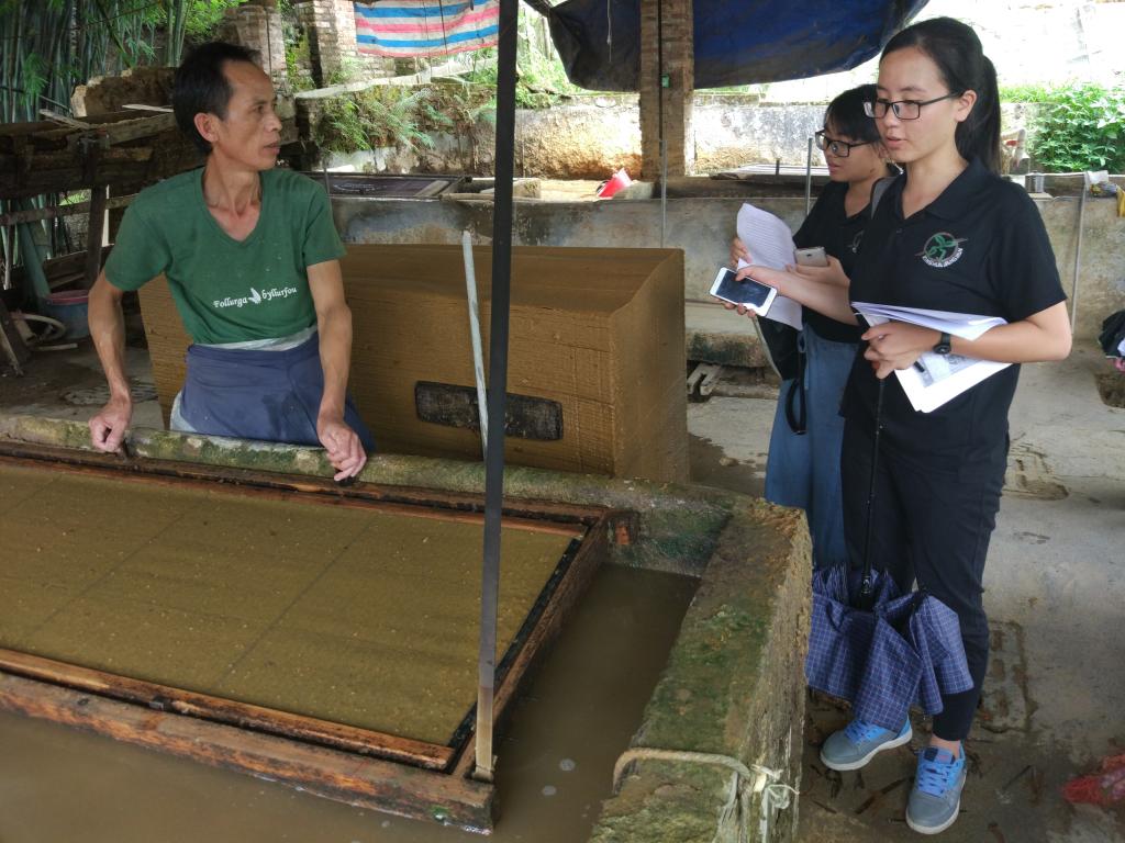 党员实践队组建了一个调研小组,前往被誉为“中国民间古法造纸第一村”的四会邓村进行古法造纸术的参观与访谈调研。