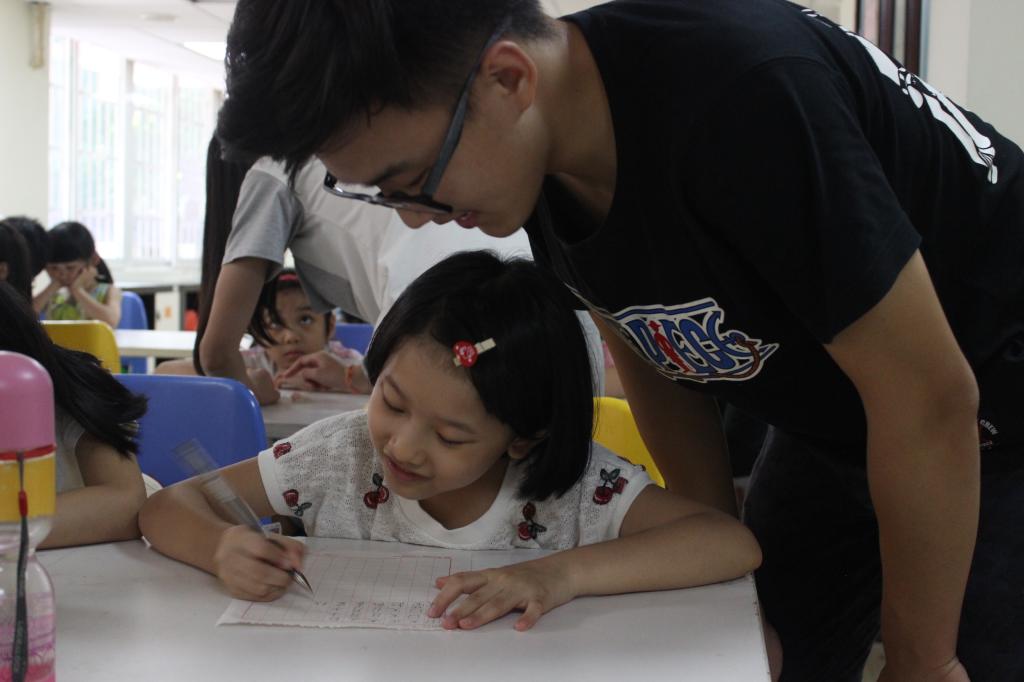 由于都是社区的孩子,对于不同年龄阶段的他们对活动的理解程度不同,因此我们安排好队员随时进行协助指导,从而及时解决孩子们的疑问,让他们能融入到活动,和其他小朋友一起从中体会到课堂上没有的内容。