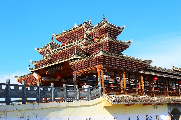 实践队的另一个目的地风雨桥为县里最大的风雨桥,因桥上建有廊和亭,既可行人,又可避风雨,故称风雨桥。值得一提的是,这座风雨桥并不是以前保存下来的,这也是令队员们惋惜的一个地方;而风雨桥的其中一种桥--飞凤桥则坐落在郊区,周围环境都保护得很好,桥上存在着很多字画,比前者要更具韵味。