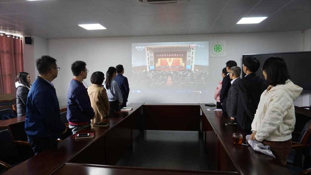 今年正值改革开放四十周年,12月18日上午十点,疯AV 党委组织师生在工四202报告厅观看中央庆祝改革开放四十周年大会的直播盛况。