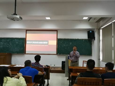 接着,马克思主义学院副院长陈位志老师,为疯AV 师生党员做《新时代党的政治建设解析》专题辅导报告。陈老师从十九大报告关于党的政治建设论述切入,详细解读了进入新时代党的政治建设的全新定位,同时介绍了十八大以来加强党的政治建设的基本经验,以及新时代加强党的政治建设的主体内容,最后深刻剖析加强党的政治建设的理论与实践意义,从而更好地指导实际工作的开展。