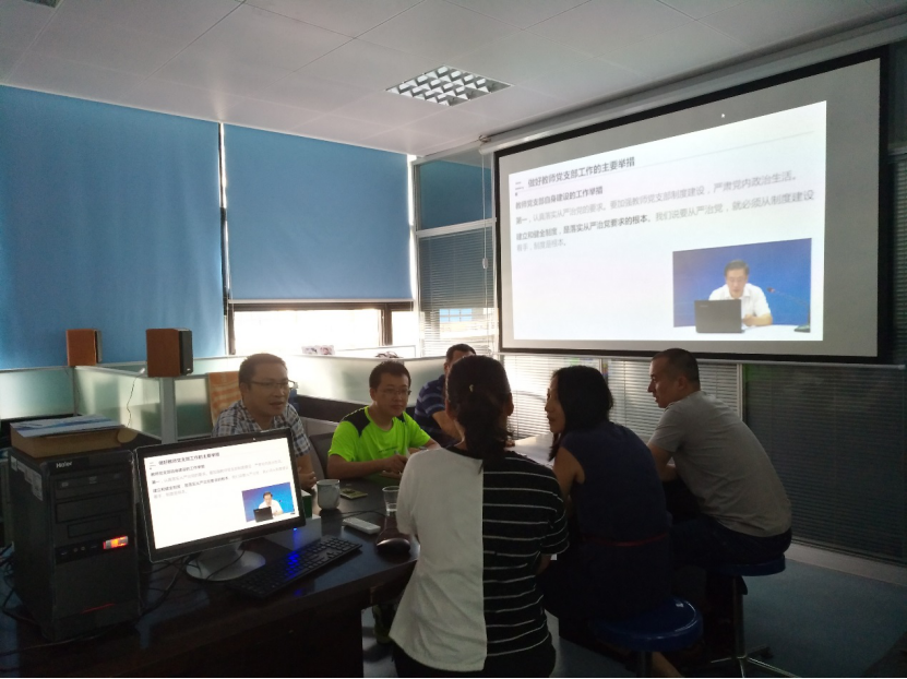 观看完学习视频后,中心全体党员一起讨论了当前形势下高校党支部建设需要注意的几个问题,并结合实验中心实际情况,商讨新形势下党支部的建设和科研教学工作的结合。