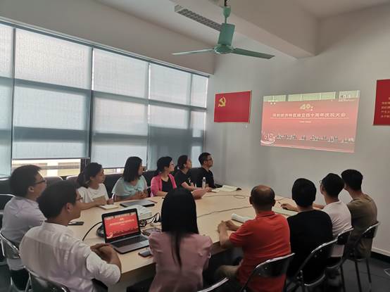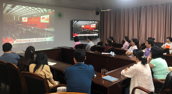 党委组织师生代表在工学四号馆202集体观看深圳经济特区建立四十周年庆祝大会直播,学院领导、党支部书记、师生代表集中观看,其余师生以所在党支部集体收听收看、个人收听收看的形式进行大会学习。