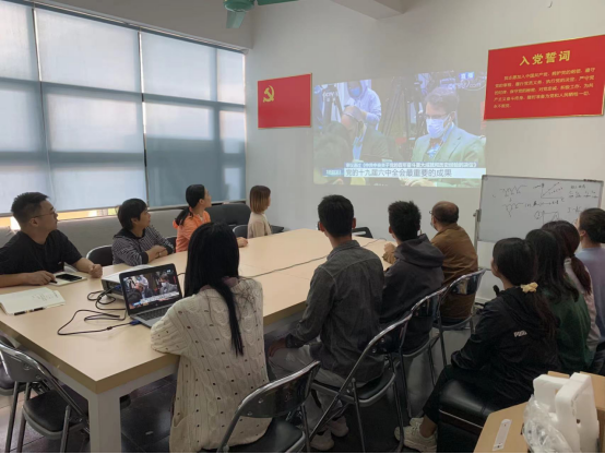 组织师生收听、收看党的十九届六中全会精神新闻发布会。师生们以支部为单位,在会议室、线上、或是宿舍收看了本次发布会。