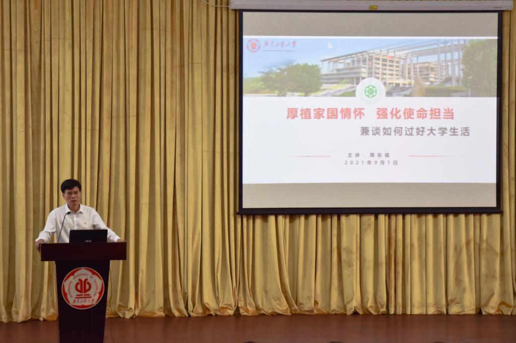本次学院在新生中开展的 “开学第一课”分为如何过好大学生活和学习方法与规划两个部分。学院党委书记周东斌老师以“厚植家国情怀、强化使命担当 兼谈如何过好大学生活”为专题为新生进行了讲授,他先是对新生们的到来表示欢迎并向他们成长路上辛勤付出的父母、老师表示感谢。接着,他请大家闭上眼睛思考并给大学四年后的自己画张像,引出本次专题教育目的和意义。周老师首先从当前国际、国内形势,分析了中国共产党为什么能,中国特色社会主义为什么好。然后提出大学是什么、可能遇到的问题和学什么、怎么学。最后从树立理想信念、提升责任担当、明辨是非观念、掌握专业知识、强化安全意识、保持持之以恒等方面给新同学提出要求,希望同学们志存高远、脚踏实地,知行合一,将来为中华民族伟大复兴贡献自己的智慧和力量。