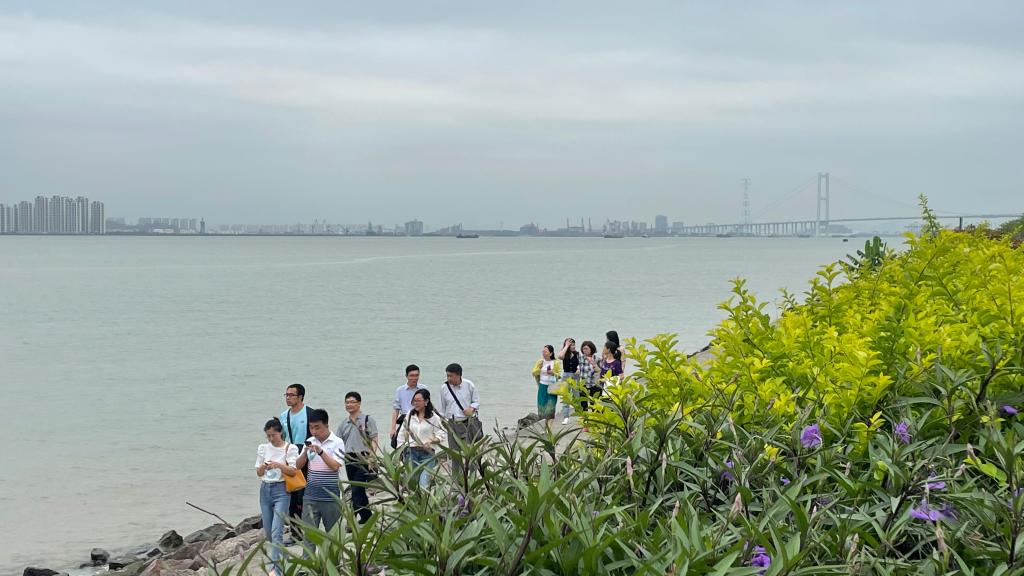 采果结束后,老师们来到海鸥岛岸边,沿着堤岸,或骑单车、或徒步,感受迎面而来的微风,看着礁石上悠然自在的招潮蟹,老师们平日里紧张繁忙的身心得到了极大的放松,各位老师之间的关系也变得愈加融洽。