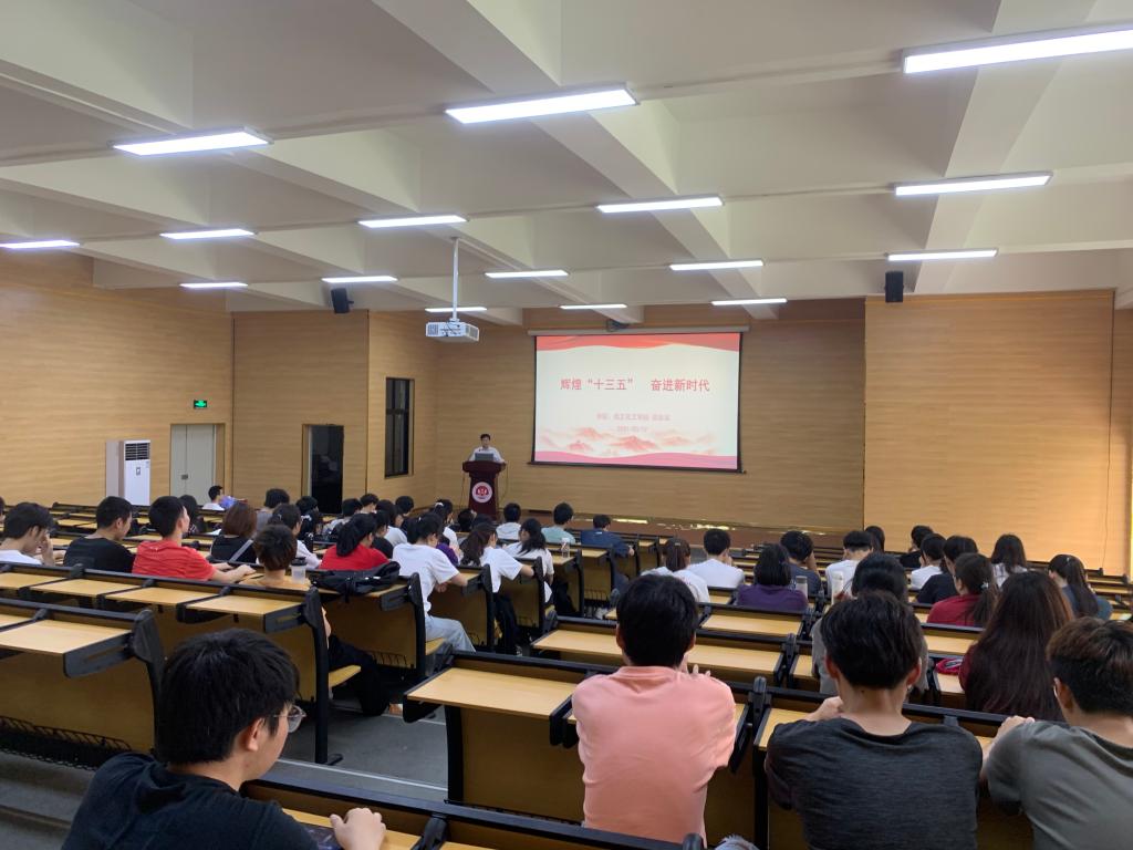 周东斌书记围绕《辉煌“十三五” 奋进新时代》这一主题,从决战脱贫攻坚取得坚定性胜利,贯彻新发展理念、推进高质量发展迈出重要步伐,人民群众获得感、幸福感、安全感显著增强,中国共产党领导和我国社会主义制度优势进一步彰显这四个方面进行讲解,与同学们一起回顾了“十三五”期间我国经济社会发展取得的辉煌成就,勉励同学们继承与发扬党的光荣传统,刻苦学习,胸怀祖国、脚踏实地,在建党100周年之际,以奋斗与担当唱响新时代的青春之歌,为实现中华民族伟大复兴的中国梦贡献青春力量。