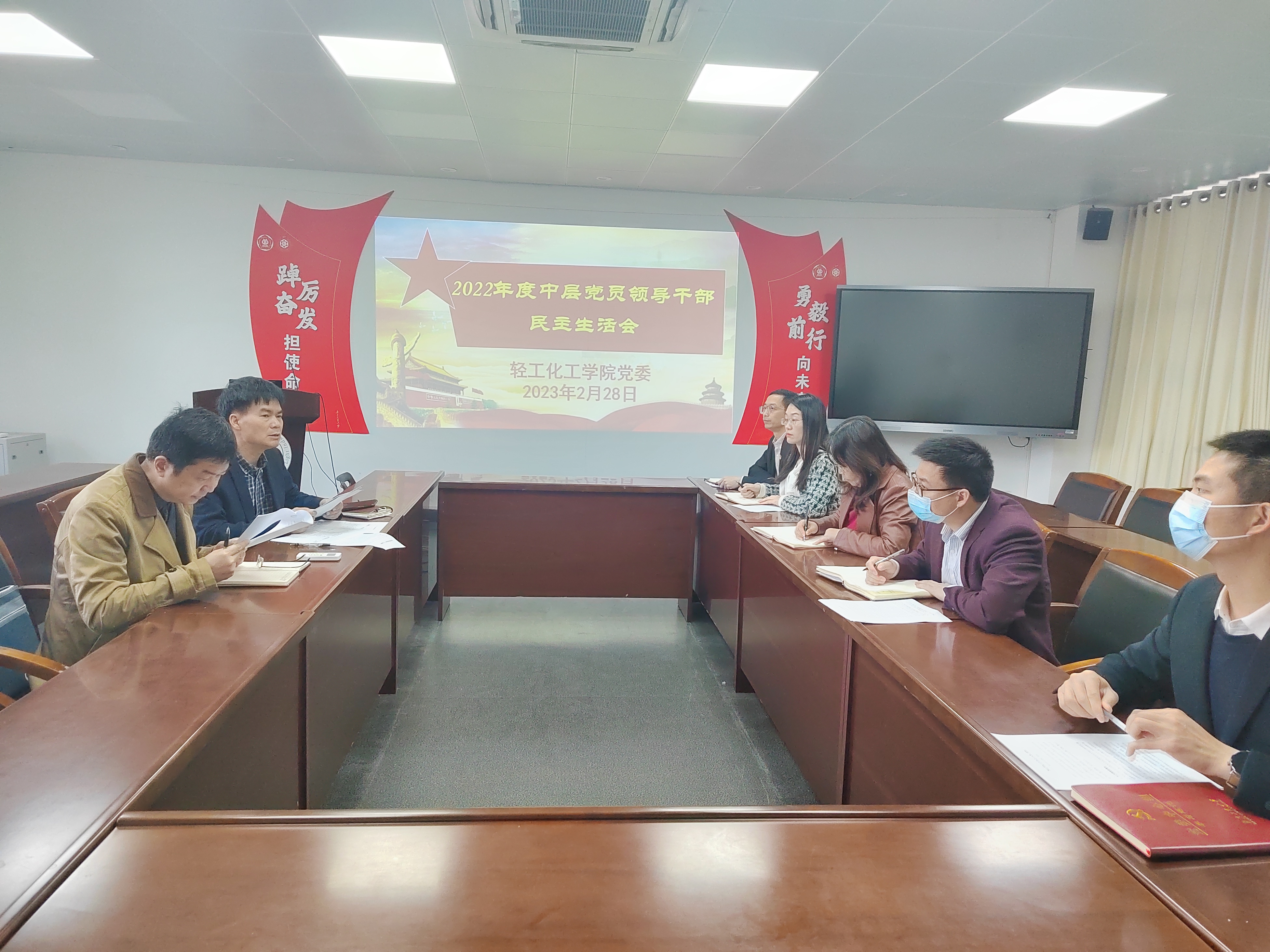 2月28日下午,轻工化工学院领导班子在工学号馆202会议室召开2022年度中层党员领导干部民主生活会,会议由学院党委书记周东斌主持