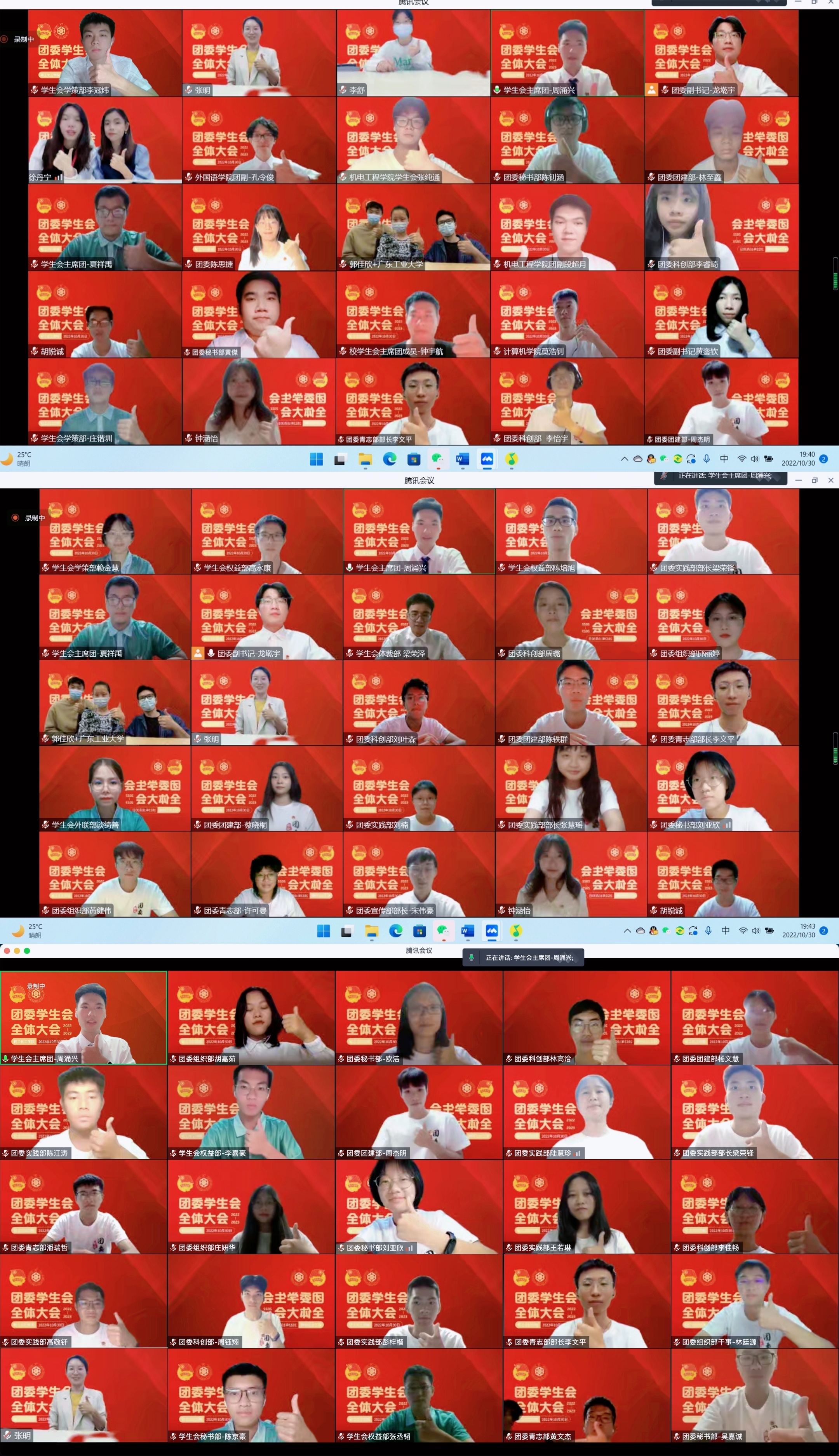 10月30日晚,我院2022-2023学年度团委学生会全体大会根据学校疫情防控工作要求以线上形式召开。学院团委书记张明,团委副书记兼学生会秘书长徐丹宁,团委副书记林沛、张昊昀,辅导员郭佳欣、李舒,校学生会主席团成员、其他学院学生干部代表及学院团委学生会全体成员共128人参与活动。