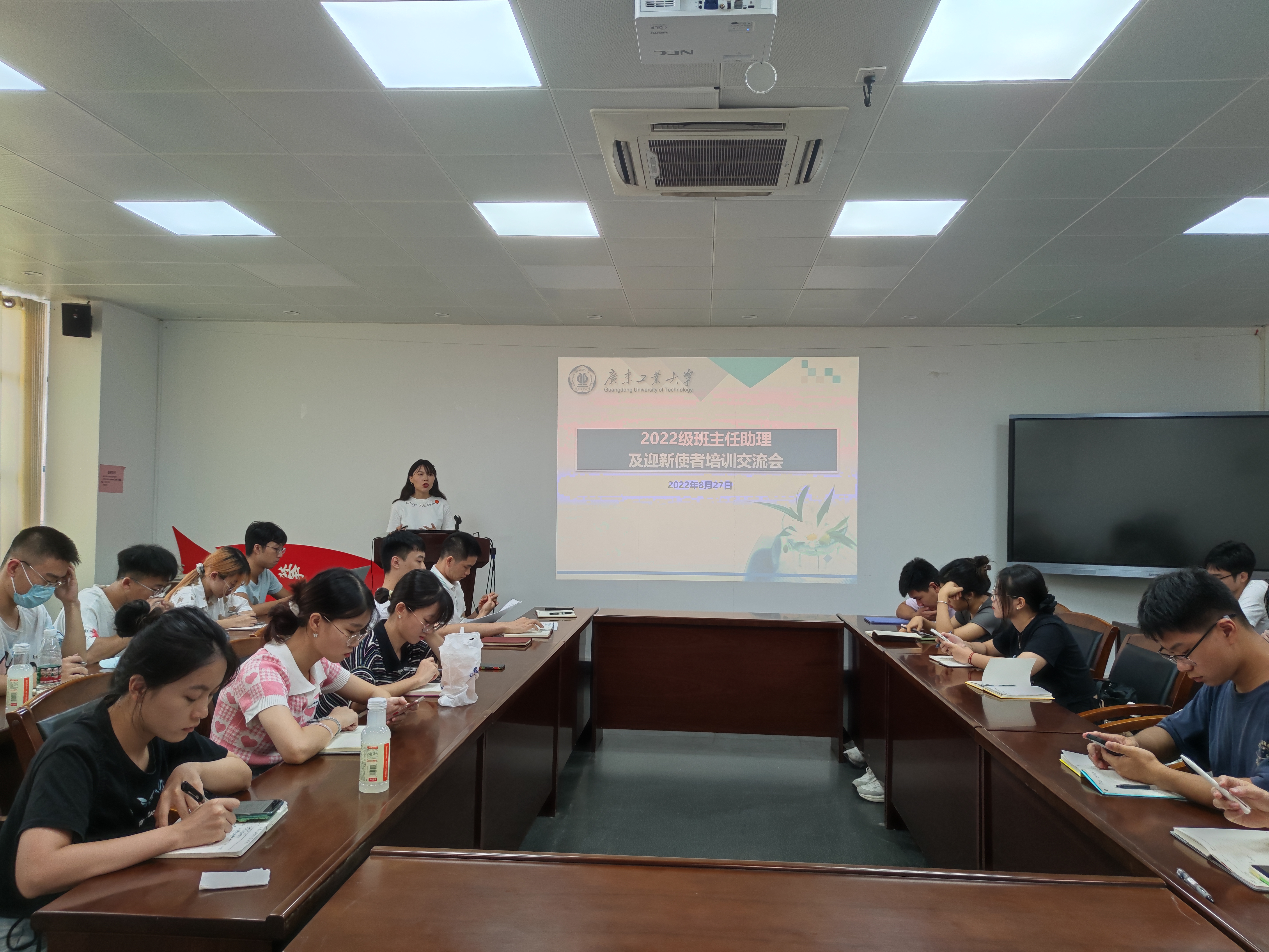 91日晚,为进一步做好迎新当日的各项准备工作,2022级辅导员组织新生学长以及迎新使者召开了工作会议,并且分发新生智囊袋。为确保迎新工作正常有序进行,两位辅导员老师再三强调迎新工作的注意事项,进一步明确工作任务。