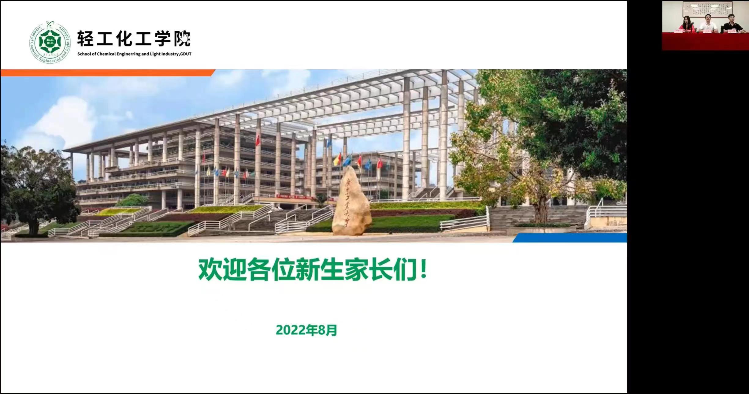 91日晚,疯AV 在线召开了2022级新生家长会。学院党委副书记杨刚对家长们参会表示欢迎,感谢家长们对广工轻化学院的信任,为家长们详细介绍了学院历史、师资力量、教学科研条件、学科建设、专业建设以及人才培养成果等内容。随后,辅导员张昊昀介绍了新生们入校后可能会面临的常见问题,对家长如何科学合理应对孩子遇到的问题提出了建议,并讲解了家校协作的注意事项。辅导员徐丹宁为家长们介绍了93日新生报道的注意事项及疫情防控要求。在互动答疑环节,面对新生家长们积极提问,老师们一一作了解答,以期让家长们顺利、安心地将孩子送到广工大。